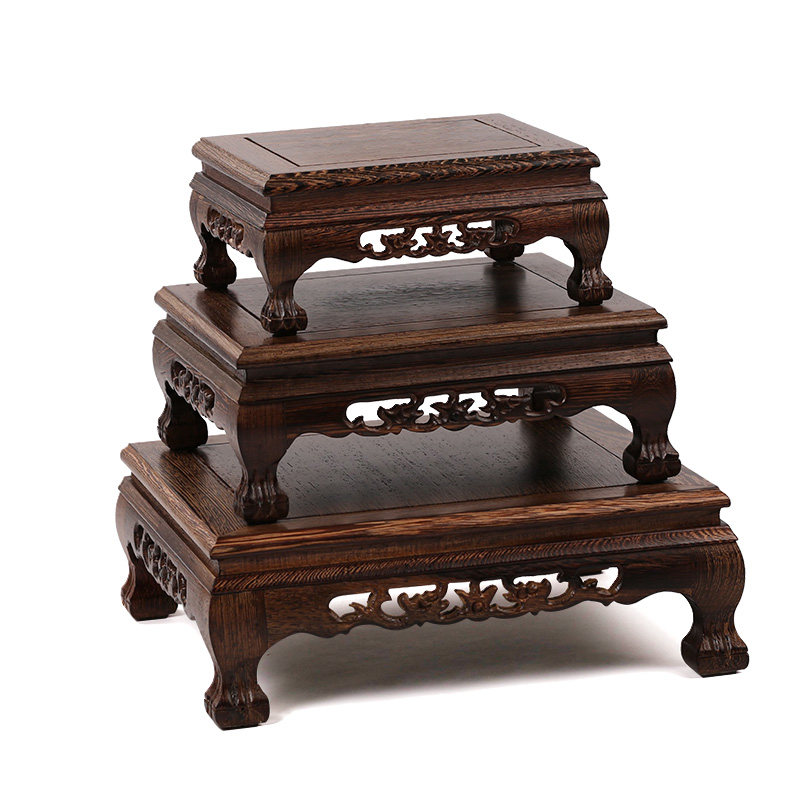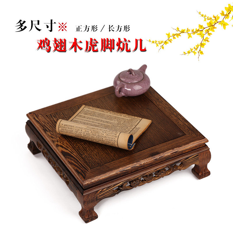 Chicken Winged Oak Mahogany Carving Craft Ornament Base Solid Wood Rectangular Stone Flowerpot Buddha Statue Base