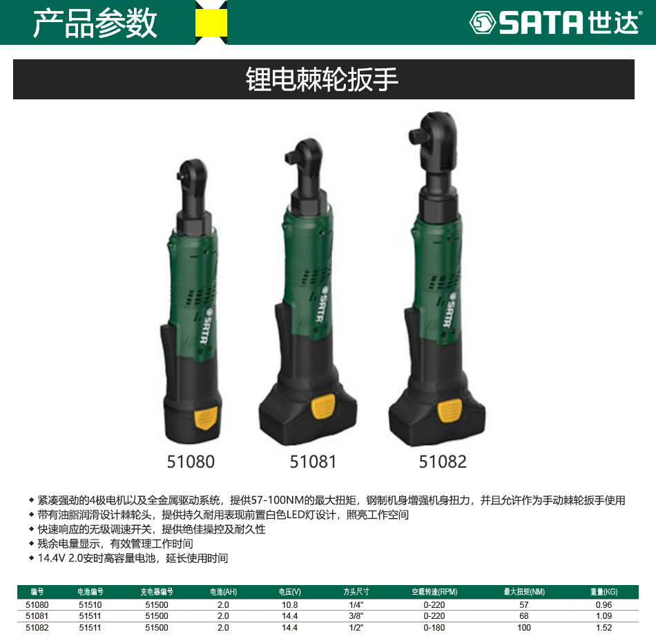 SATA Shida lithium battery ratchet wrench Dafei Zhongfei 1 4-inch socket wrench 10 8V14 4v51080 51081 51082