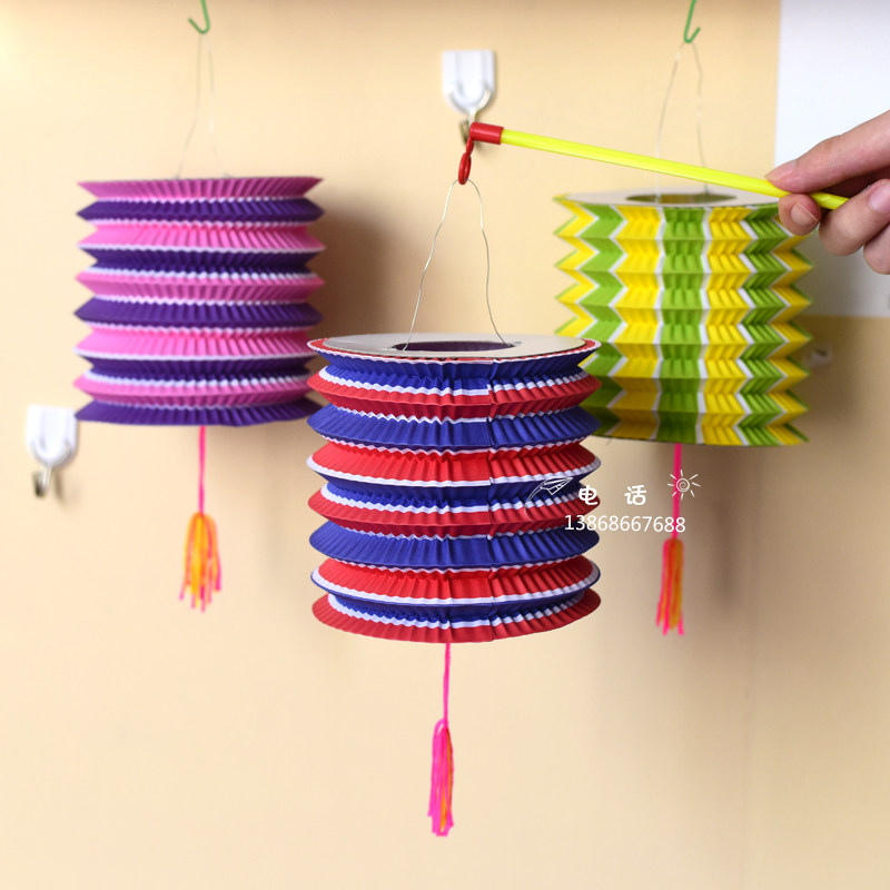New Year's arrangement of colored paper lanterns Kindergarten classroom corridor environment hanging decoration arrangement Folding hand organ