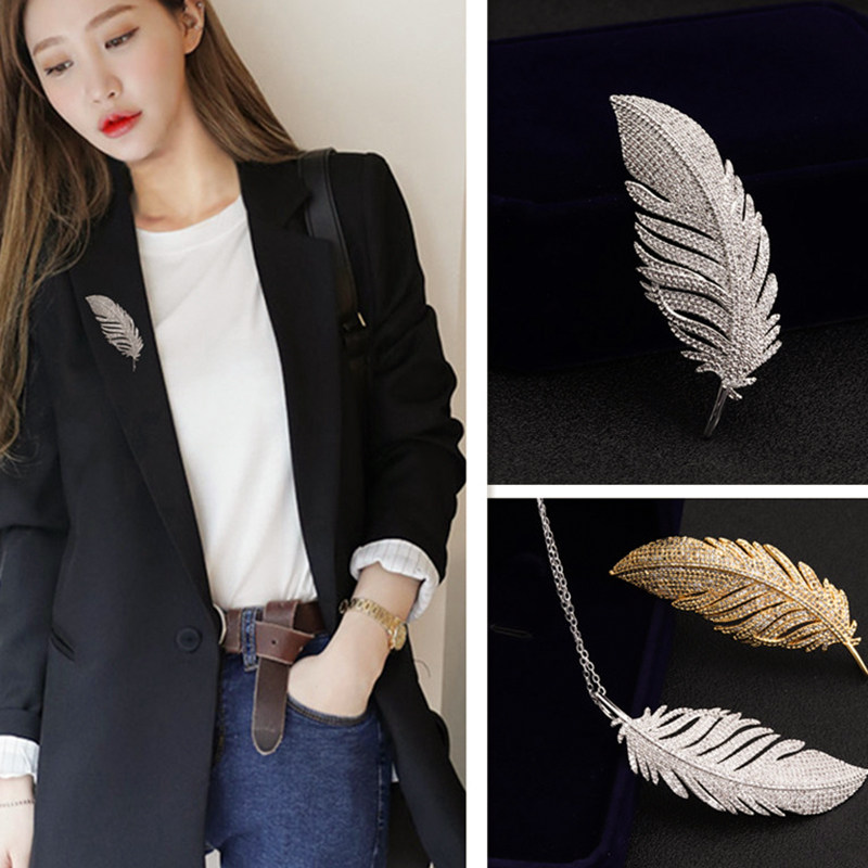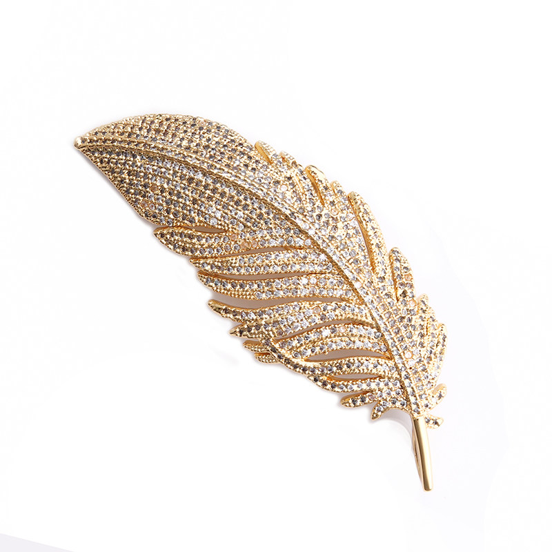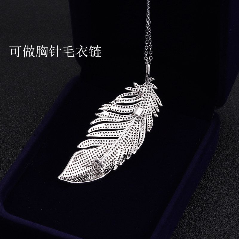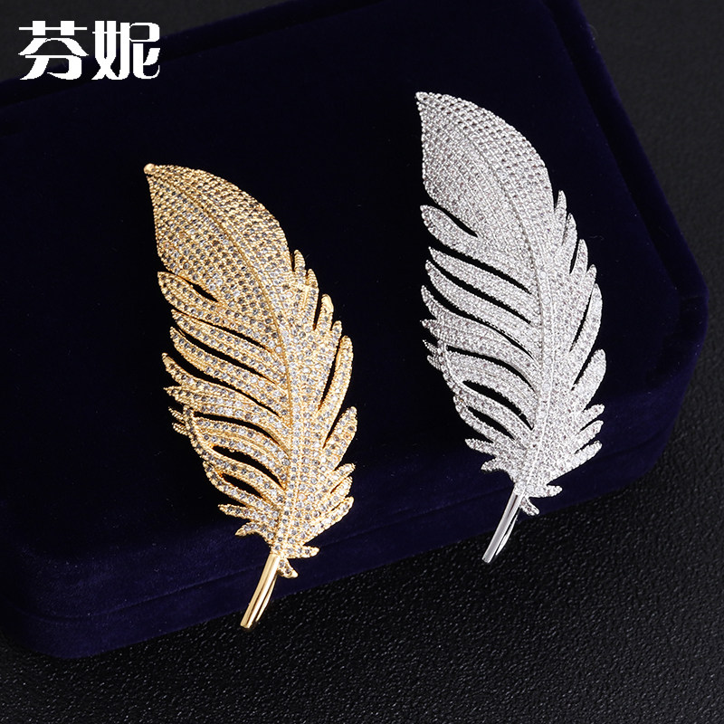 Mibao high-end custom full zircons white feather brooch with male and female suits sweater necklace accessories Genuine Gold Plated
