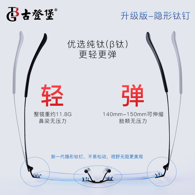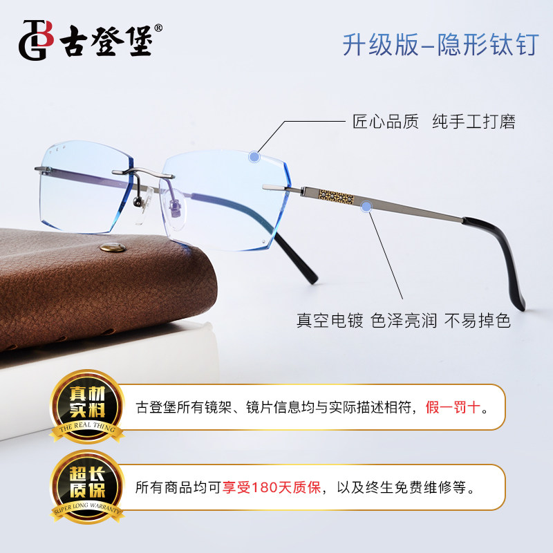 Gutenberg glasses frame men's frameless with degree diamond cut edge pure titanium ultra-light myopia glasses frame eye frame