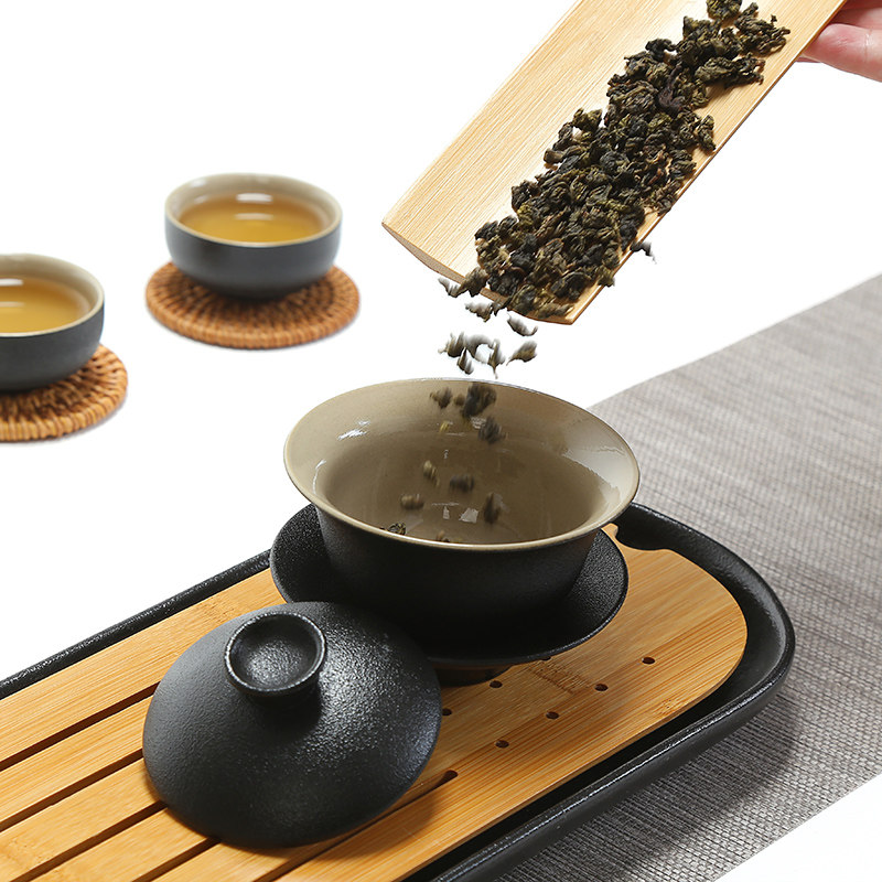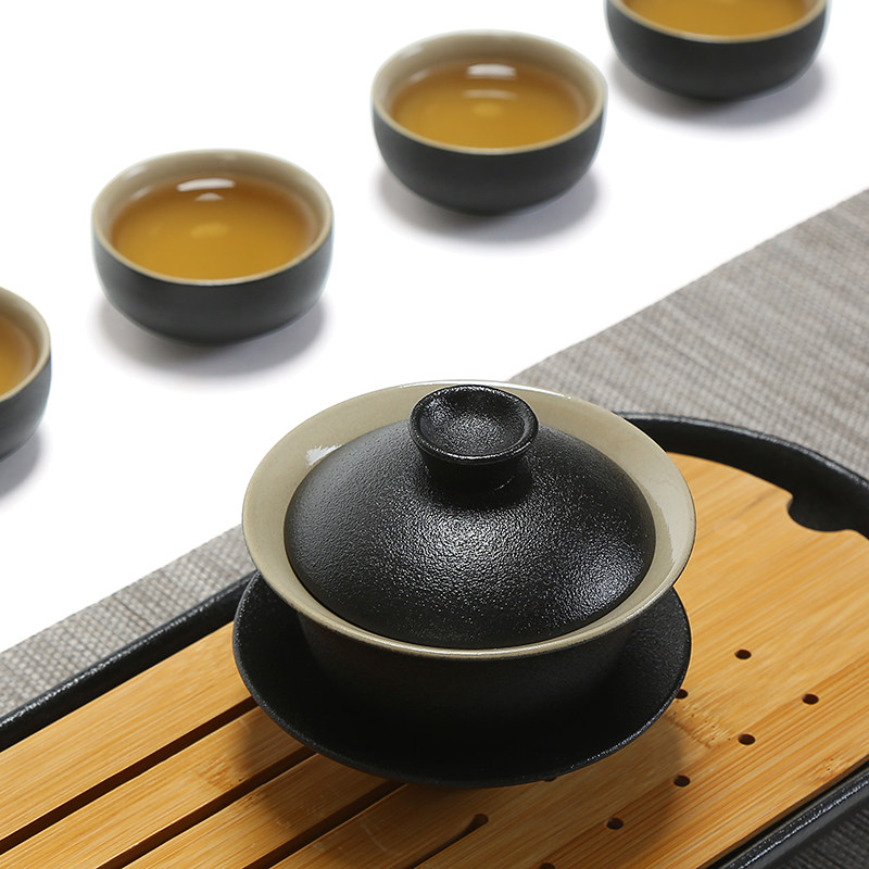 Zen style black stone glaze black pottery cover bowl three talents bowl kung fu tea set tea cup coarse pottery tea bowl tea ceremony bowl hand grab bowl