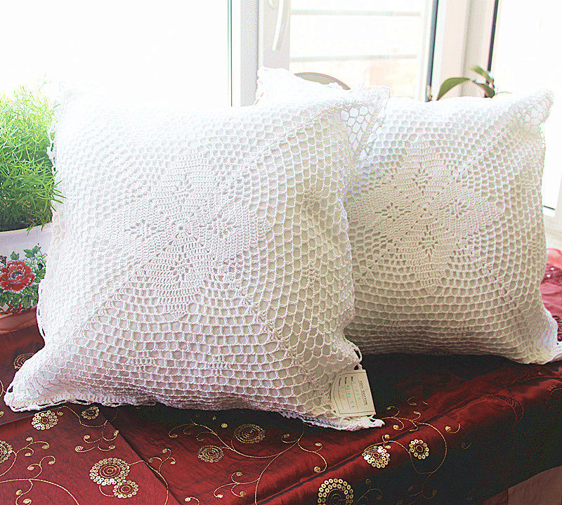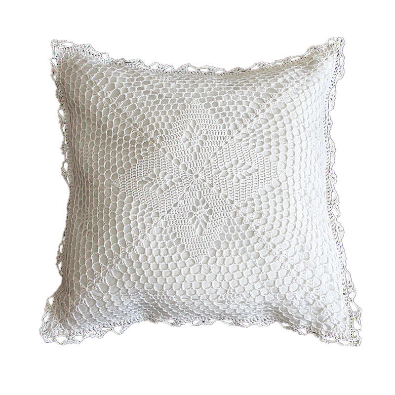 Foreign Trade American Pure Cotton Cushion Cover Handmade Crochet Hook Crochet White Square Sofa Living-room Holding Pillow Cover Without Core