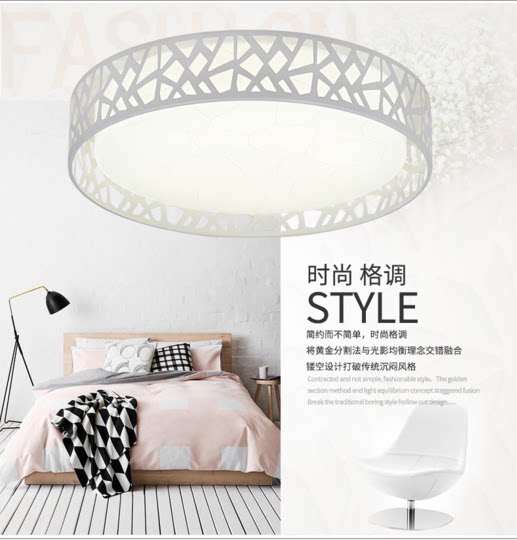 Modern minimal bedroom lamp circular ceiling lamp LED press lamp study intelligent translucent 50CM