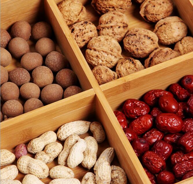 Simple Nanzhu Detachable bamboo carbonized grid with lid Snack candy nut box Desktop food storage box