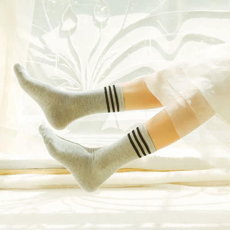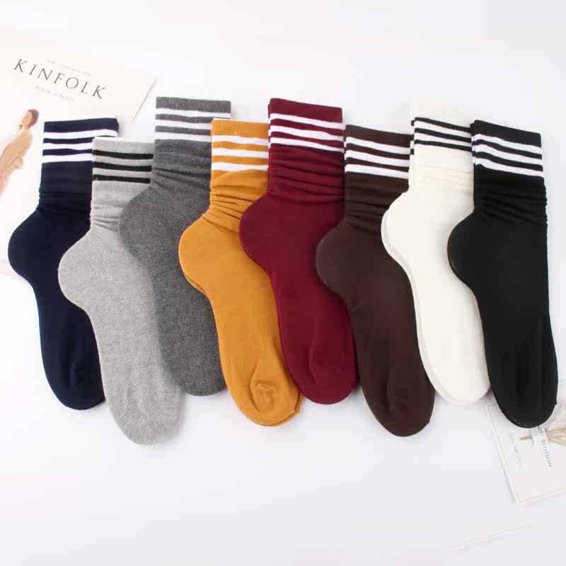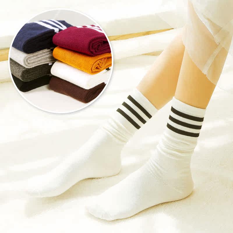 Spring Summer Autumn Winter Season Bubble Stockings Women Han Version Cotton Socks Short Socks Three Bars Colliery Striped Retro Short Boots Midi