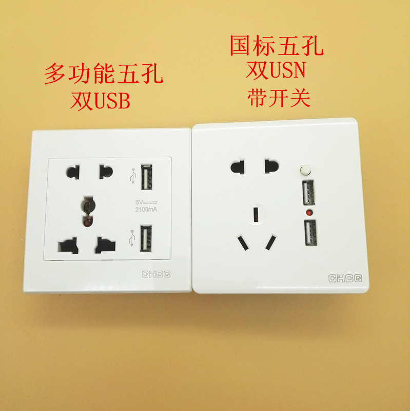 White five-hole single USB Gold Five-hole single USB White five-hole double USB Gold Five-hole double USB White multi-function five-hole double USB White Five-hole double USB with switch White dual USB