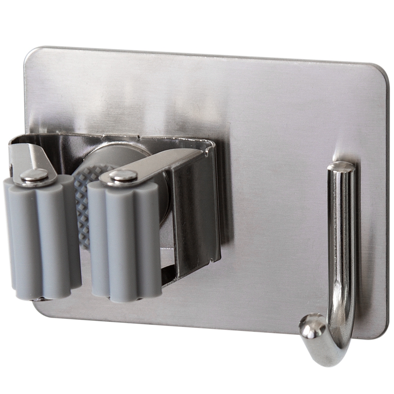 Powder room mop rack hanging broom hook stainless steel nail-free wall storage shelf Strong incognito mop card holder clip