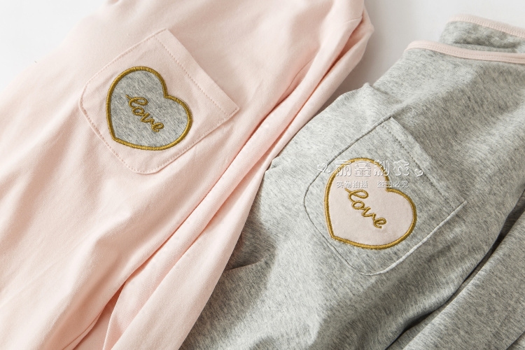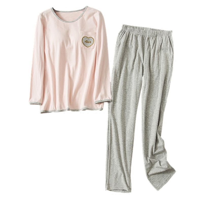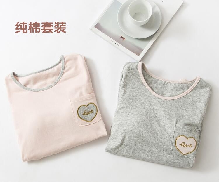 Women's autumn and winter pure cotton with chest pads long-sleeved loungewear bra-free cup one large size pajamas pajamas two-piece suit