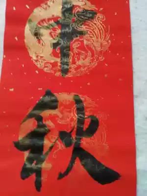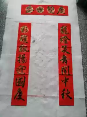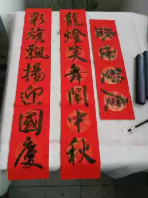 Celebration of the Mid-Autumn Festival National Day Double Festival couplet Wuyunshan people handwritten calligraphy color propaganda paper Spring Festival couplets