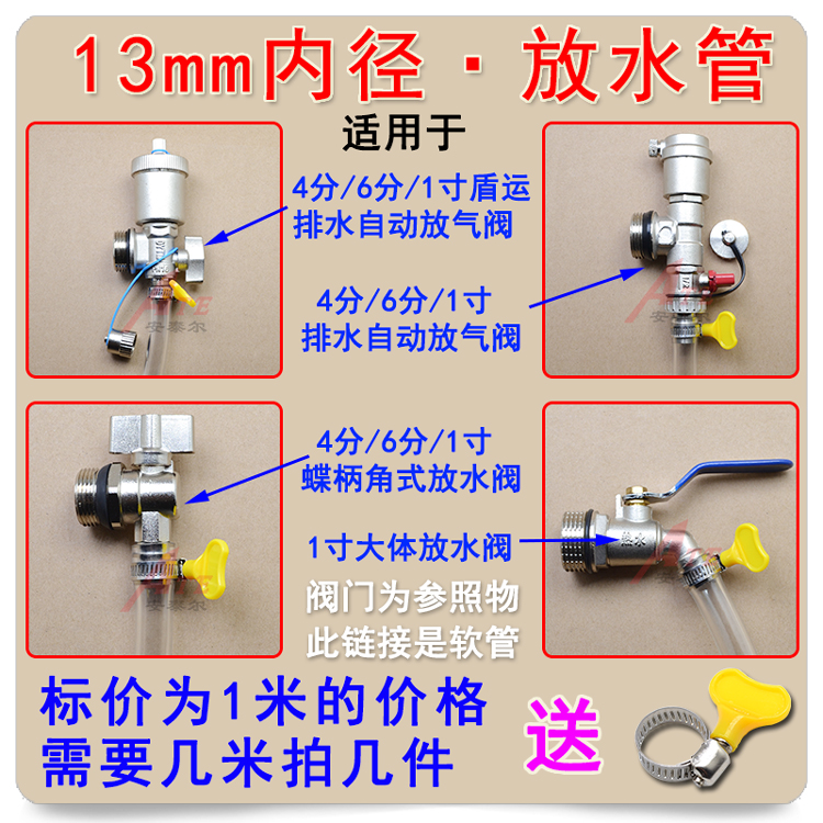6mm air release valve hose (1 meter) 8mm air release valve hose (1 meter) 12mm drain hose (1 meter) 13mm drain hose (1 meter)