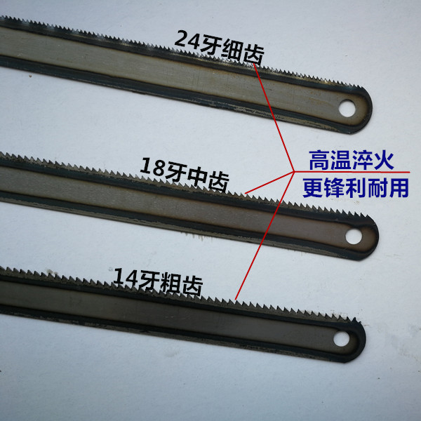 24 teeth fine teeth 14 teeth coarse teeth 18 teeth medium teeth 14 teeth (coarse tooth saw wood) 18 teeth (medium tooth saw plastic pipe) 24 teeth (fine tooth saw iron exclusive) 14 teeth (coarse tooth saw iron only) 5 packs of 18 teeth (medium tooth saw plastic pipe) 5 packs of 24 teeth (fine tooth saw iron special) 5 packs of 14 teeth (coarse tooth saw wood) 10 packs of 18 teeth (medium tooth saw plastic pipe) 10 packs of 24 teeth (fine tooth saw iron special) 10 packs of high-grade adjustable steel saw frame 24 teeth (white bimetal saw blade)
