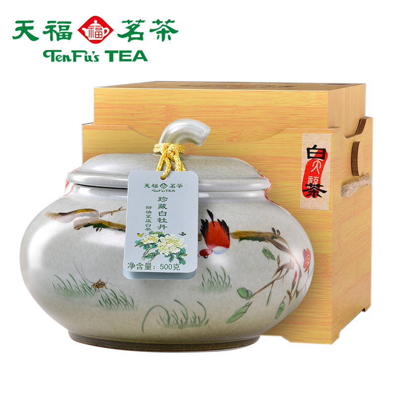 Tianfu Tea Tea treasured white peony Zhengzong Fuding white tea cake tightly pressed tea Chen old white tea 500g