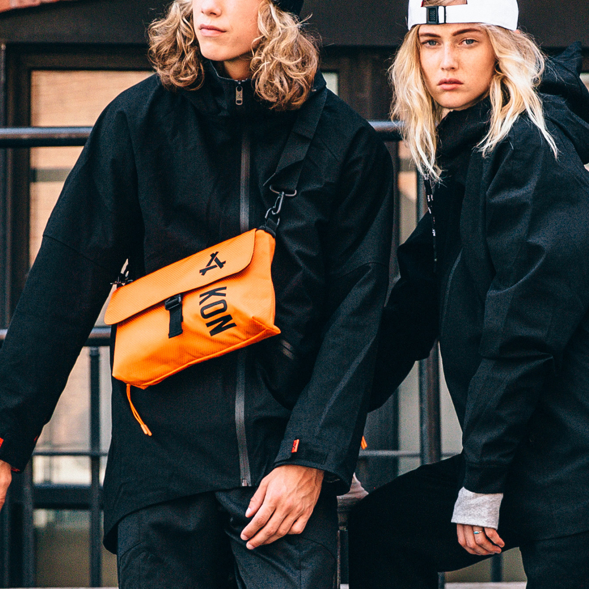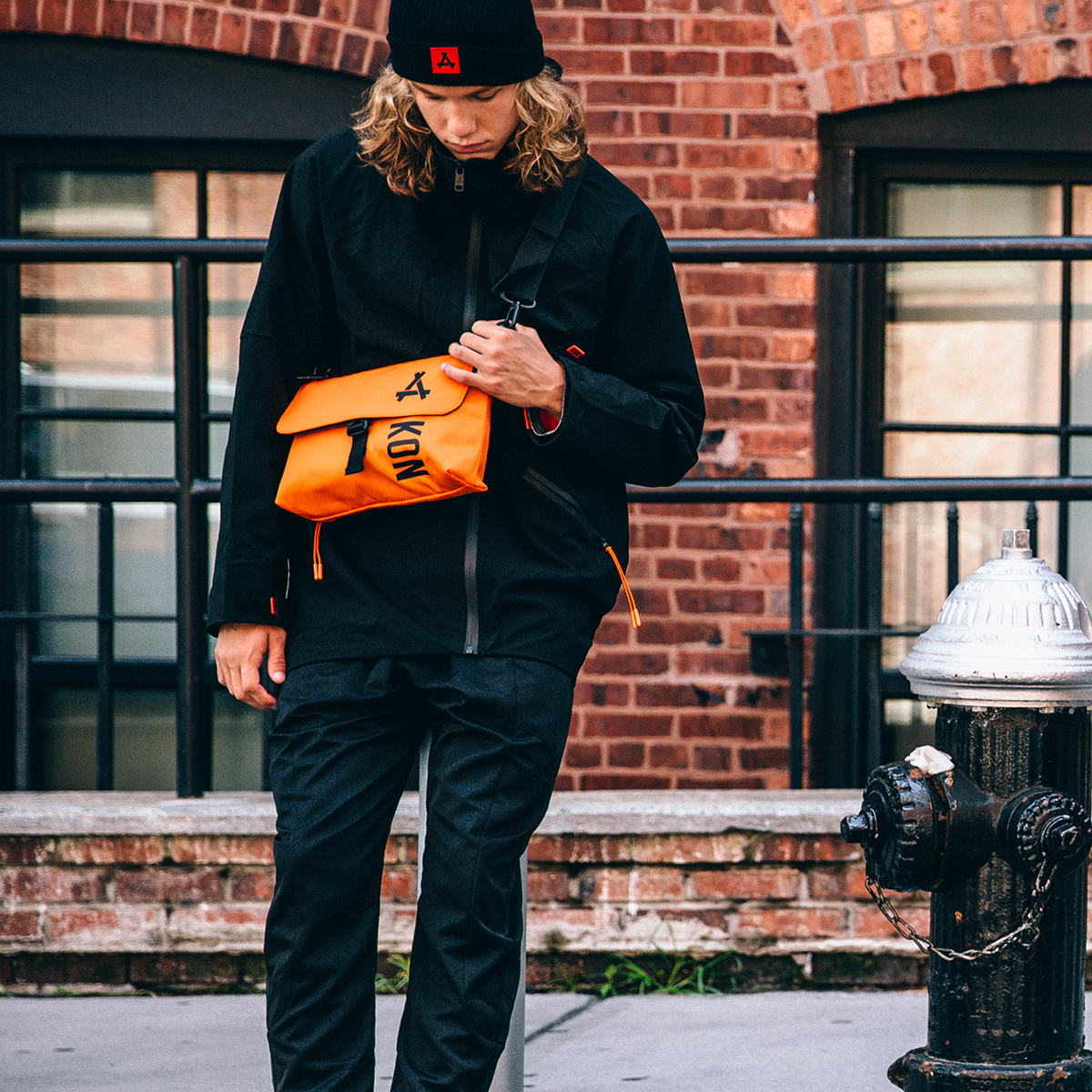 KON shoulder bag men's trendy brand shoulder bag street fashion hip hop double-sided messenger bag personality horizontal backpack