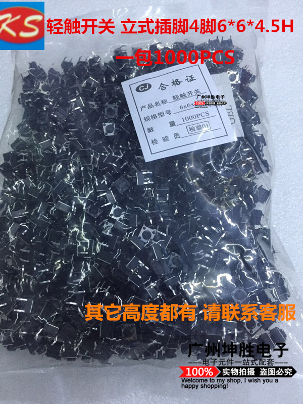 Light switch 6 * 6 * 4 5MM vertical pin 4 foot micropress key switch round head copper foot import spring sheet
