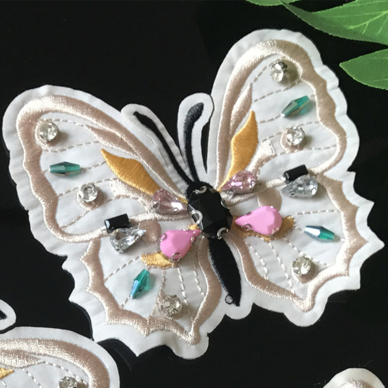 Handmade Nail Pearl Embroidery Bottom Butterfly Cloth Patch Clothing Bag DIY Decoration Breaking Hole Patch Zhang Flower Accessories Size Number