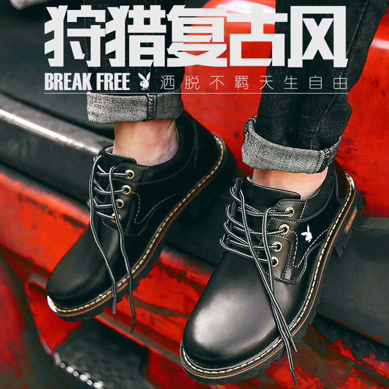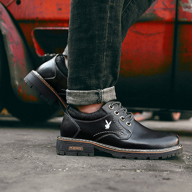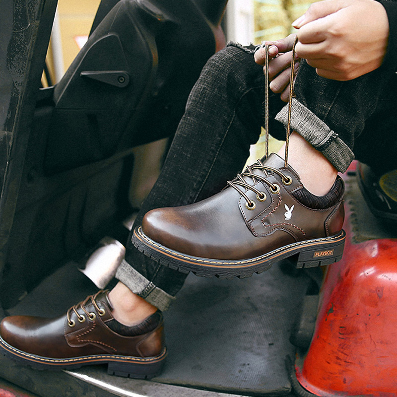 Floral Playboy men's shoes Summer men's outdoor casual leather shoes men's head overalls shoes genuine leather low help Martin shoes