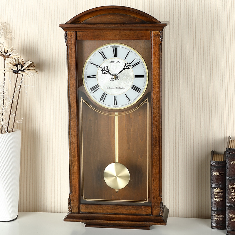 Fine work rectangular European-style creative minimalist living-room atmospheric music reported wood muted quartz hanging clock QXH030