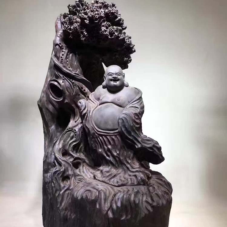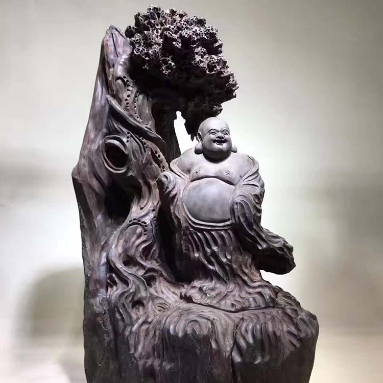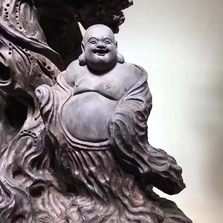 Mu Yugen Carving Factory Gloomy red toon wood Maitreya Buddha statue living room storefront office club decoration direct sales