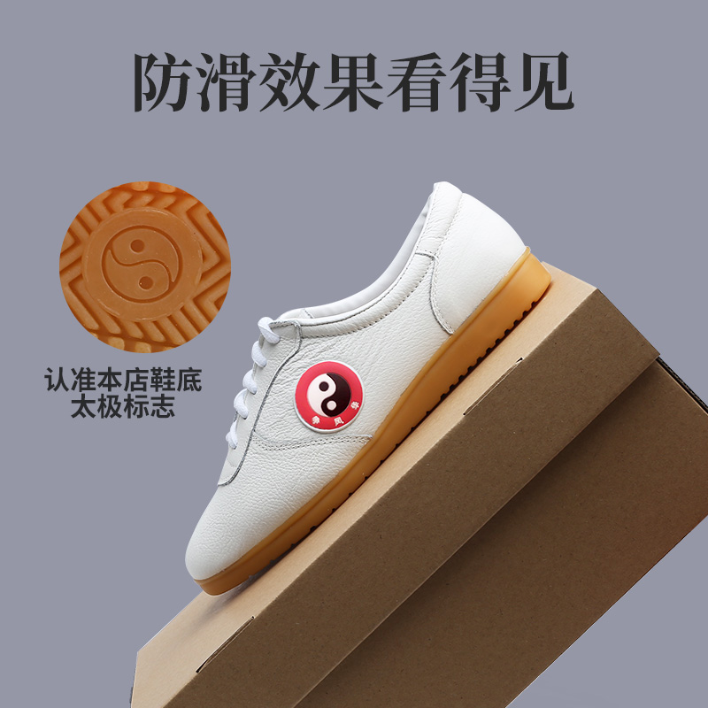 Fighting Fenghua Tai Chi shoes soft leather beef tendon sole practice martial arts shoes spring and autumn middle-aged and elderly men and women leather kung fu shoes