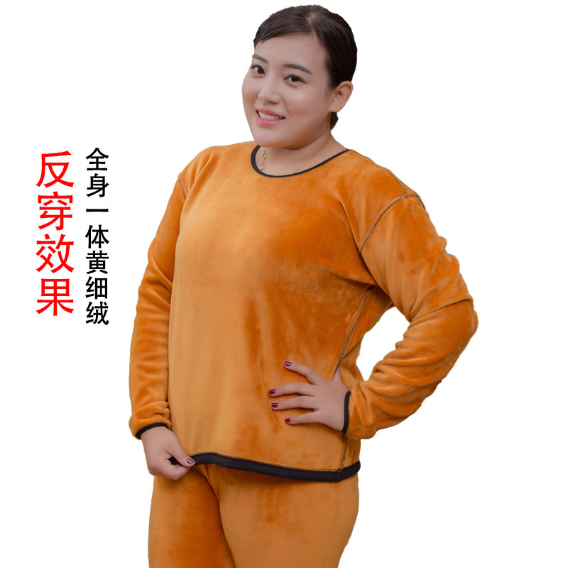 Extra-large heating clothing women's plus velvet thickening middle-aged and elderly fat mother plus fat plus size warm clothing suit