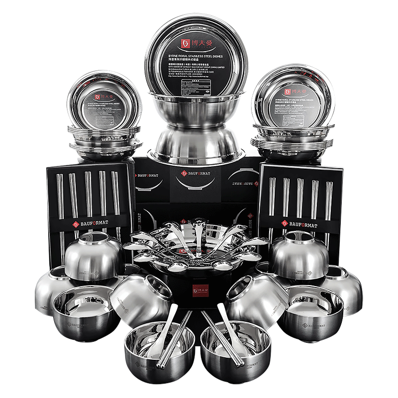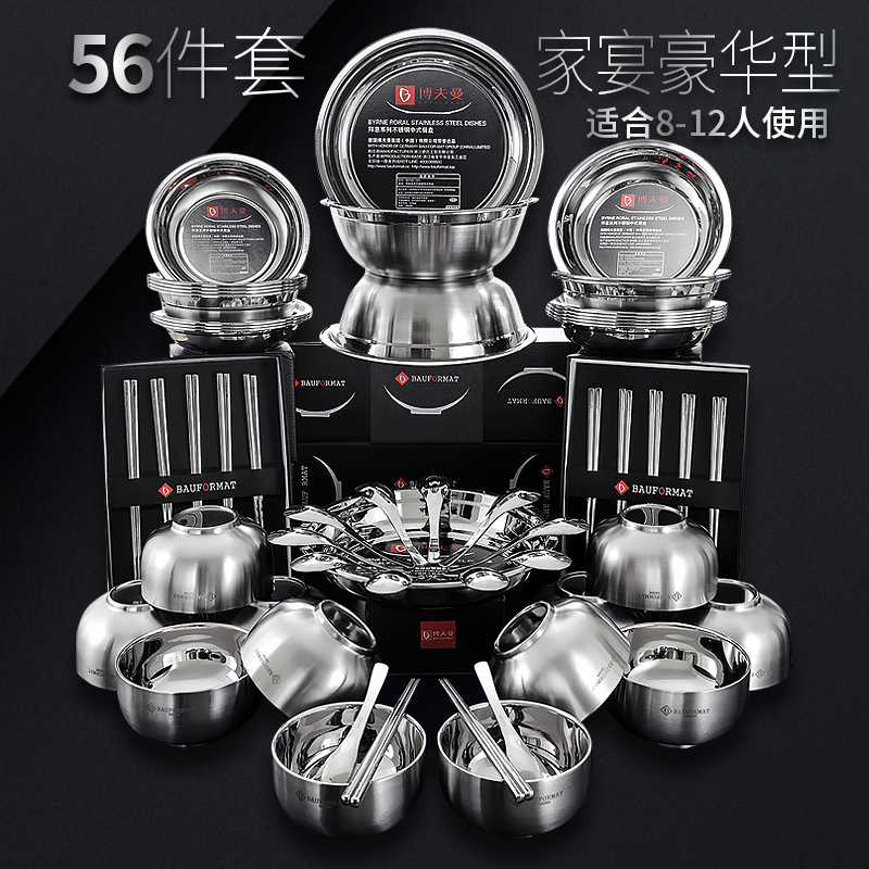 German bauformat304 stainless steel plate bowl bowl bowl chopsticks combination bowl plate Chinese household cutlery set