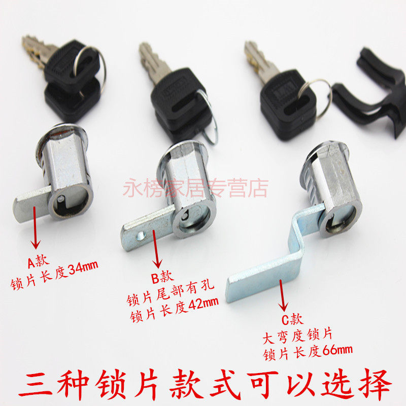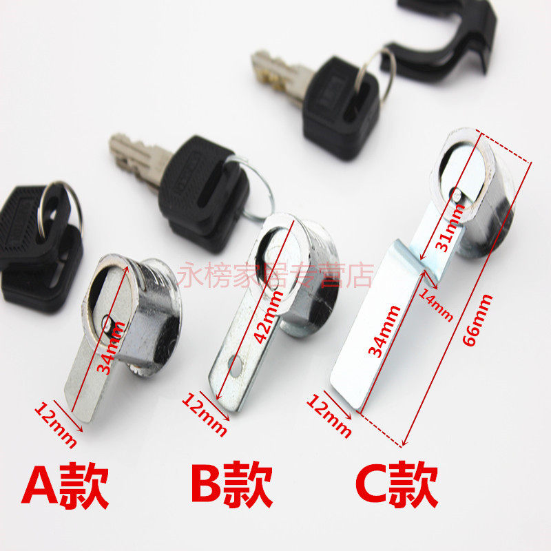 A turning piece lock B with hole turning lock C turning piece turning piece lock D notch turning piece lock E Display turning piece lock F 20 long turning piece lock tongue lock flat piece tongue lock Z-piece tongue lock Bend