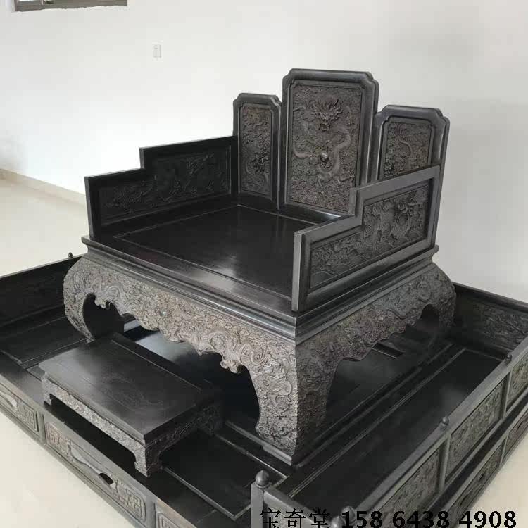 Purple sandalwood old furniture Qing Dynasty full work sculpted dragon Grand throne down to a set of Ming and Qing furnishings purple sandalwood old furniture-Taobao