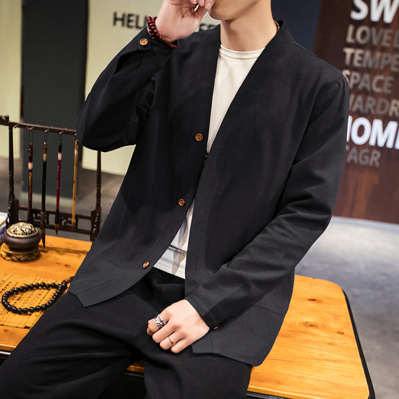 Spring Hanfu men's youth retro Chinese style cotton and linen jacket jacket Tang suit Buddhist men's clothing ancient style layman's clothing