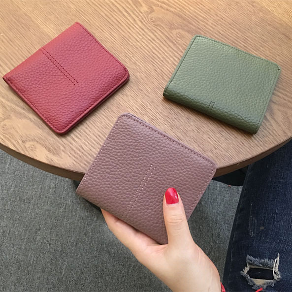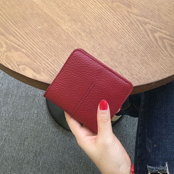 Korean version of short small wallet women's 2021 new leather wallet fashion buckle 20% card soft cow wallet simple