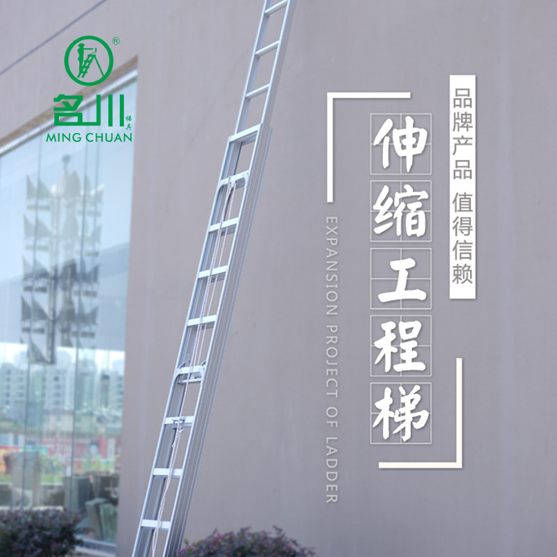 Mingchuan ladder thickened aluminum alloy engineering ladder single-sided telescopic ladder 4-12 meters widened double-step single-sided straight ladder