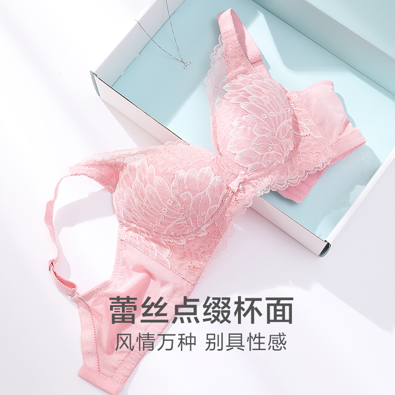 Si Shier sexy lace underwear women's thin section without steel rims beautiful back bra push-up big breasts show small adjustable bra