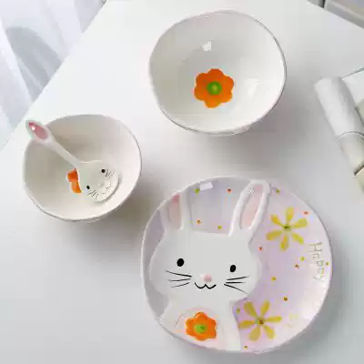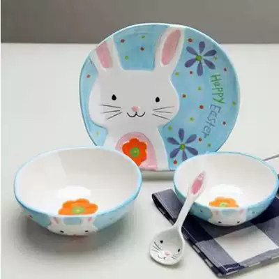 Children's bowl chopsticks set Rabbit Baby eating bowl ceramic tableware cute cartoon student home unicorn Bowl