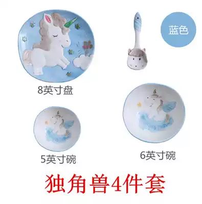 Pink unicorn 3 pieces (small Bowl plate spoon) Blue unicorn 3 pieces (small Bowl plate spoon) 3 pieces of giraffe (small Bowl plate spoon) Blue rabbit 3 pieces (small Bowl plate spoon) Powder unicorn large 3 pieces