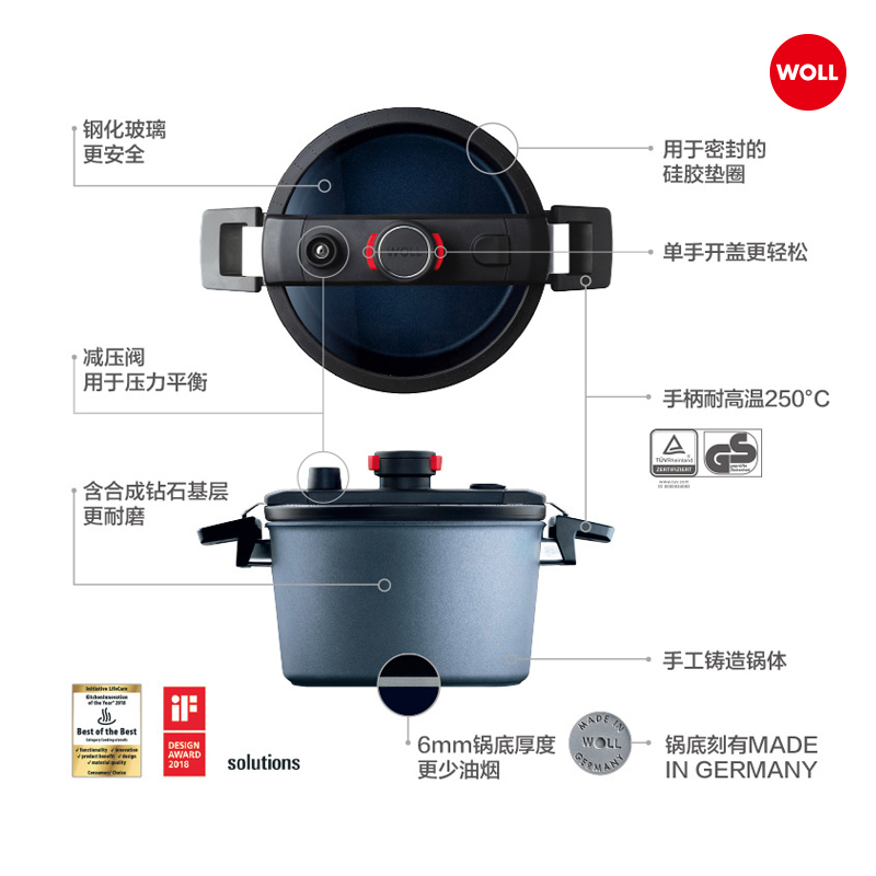 WOLL Germany imported non-stick pan micro pressure cooker pressure cooker fast cooker 24cm diamond series German micro pressure cooker