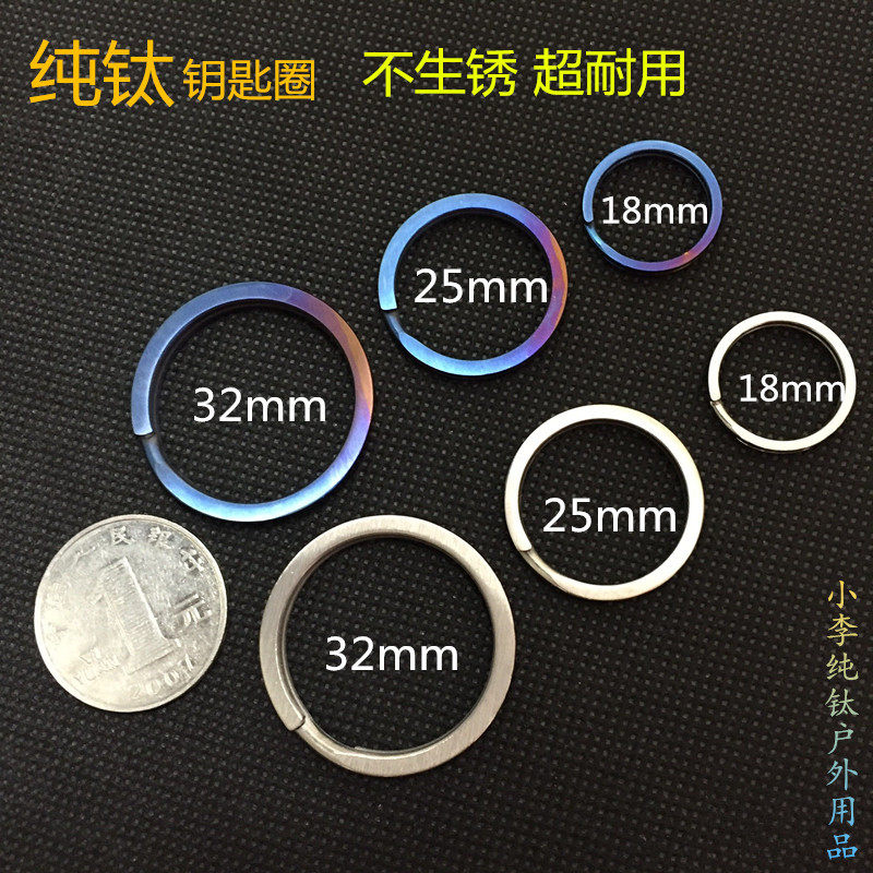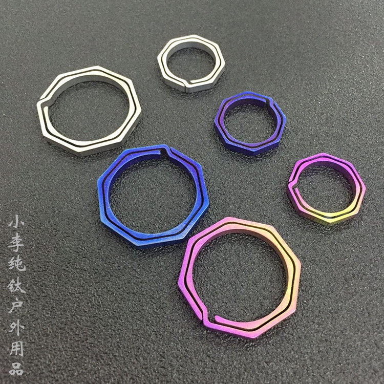 Titanium alloy key ring ring round stainless steel color titanium metal flat ring pure titanium key chain quick hanging ring octagonal ring
