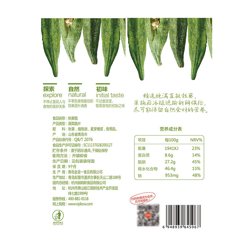 Baicao flavor flagship store dried okra 50g*2 bags of ready-to-eat vegetables and fruits simply chips pregnant women zero food specialty