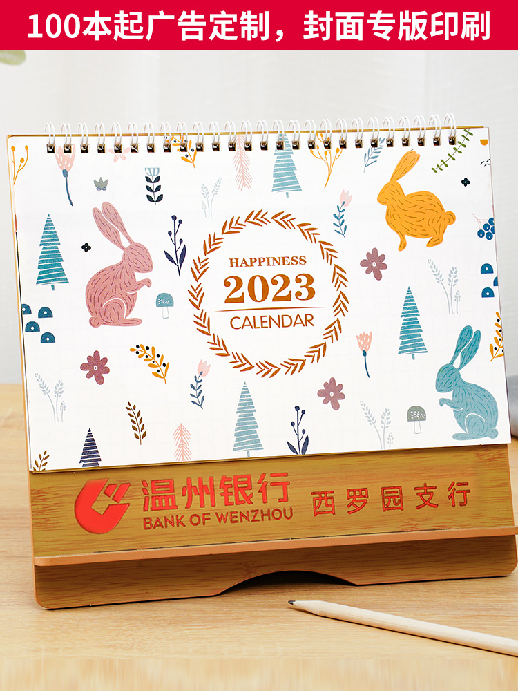 2023 wooden multifunctional business desk calendar creative simple small fresh desk decoration calendar plan note company corporate advertising custom rabbit year 2022 calendar printing