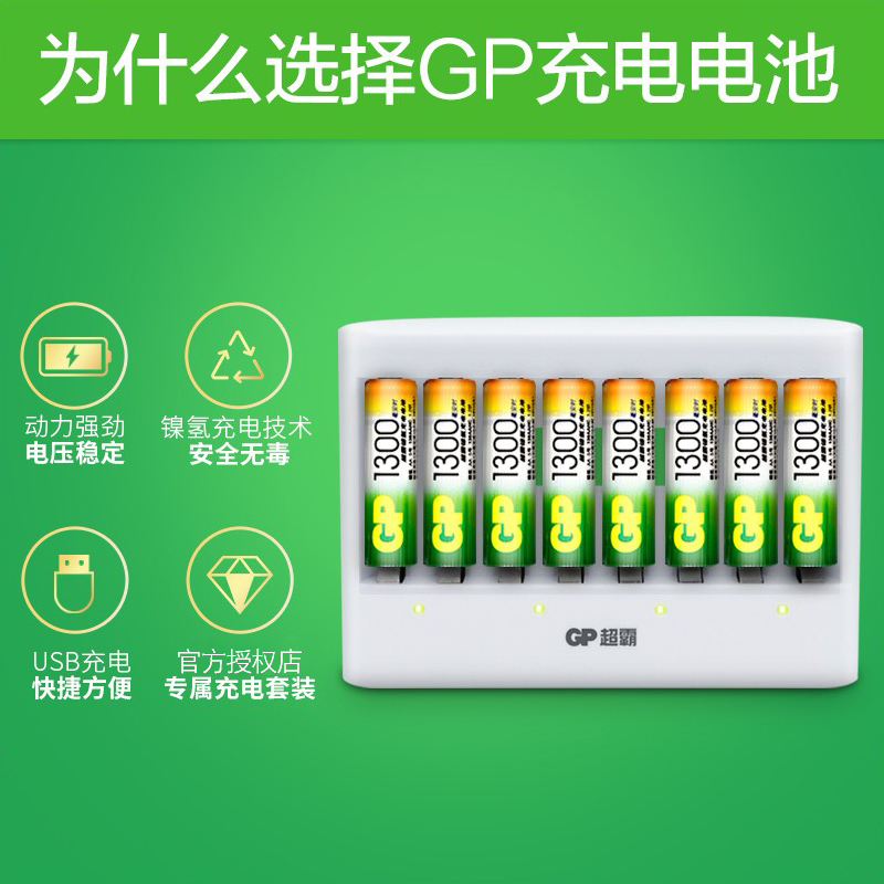 GP Superpower No 5 rechargeable battery set Large capacity No 5 battery rechargeable 1300 mAh 8 multi-function AA AAA original battery charger Universal set can punch No 5 No 7