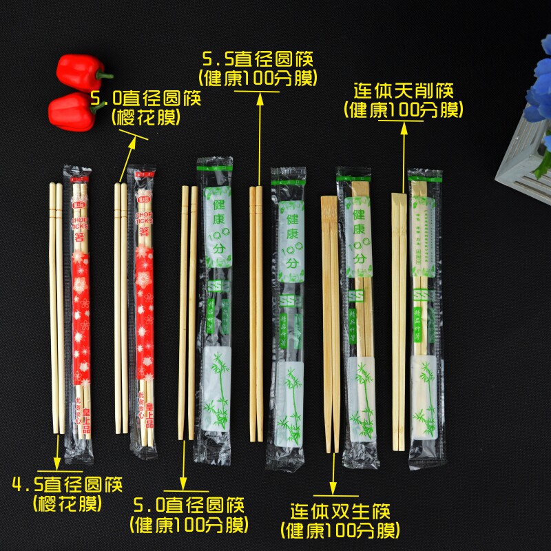 Disposable chopstick independent packaging bamboo chopstick sanitary bamboo and wood cut double raw round stick opp film convenient to match with outside sending chopsticks