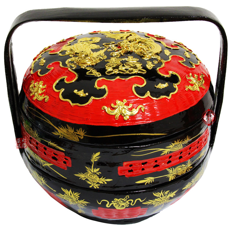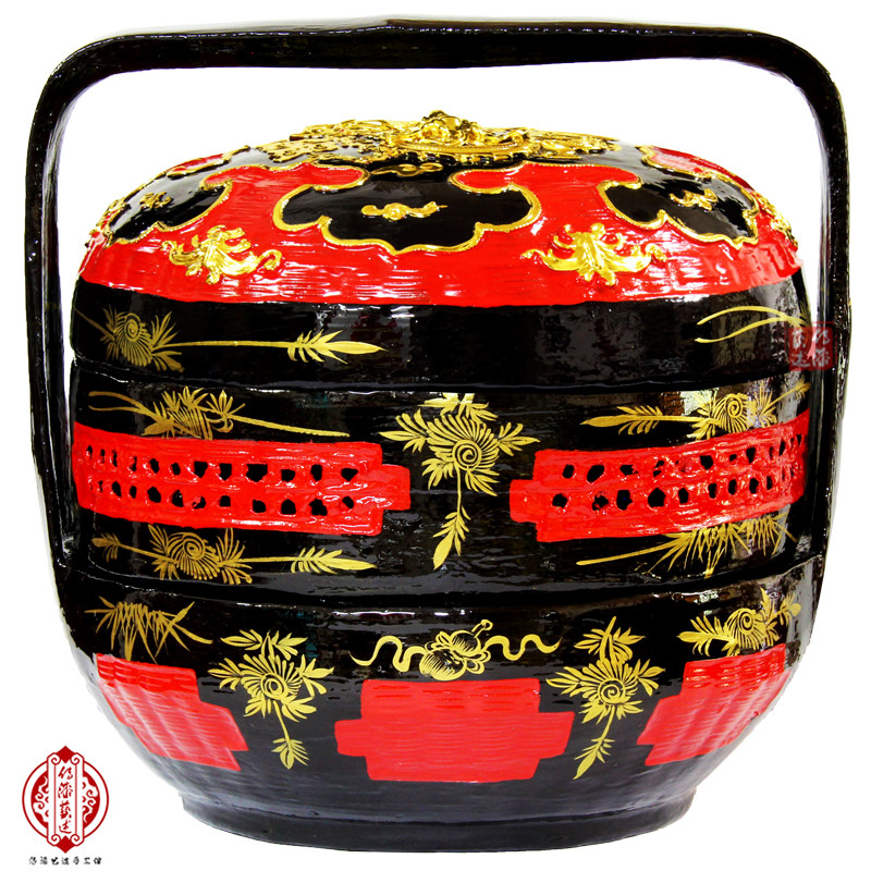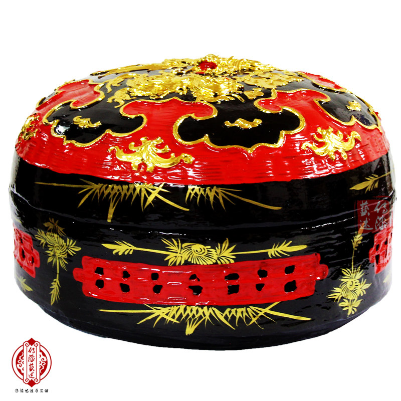 Yongchun lacquer basket folk handicraft line carving dragon and phoenix bamboo weaving large lacquer wedding jewelry basket burning incense basket bye bye basket lacquer art