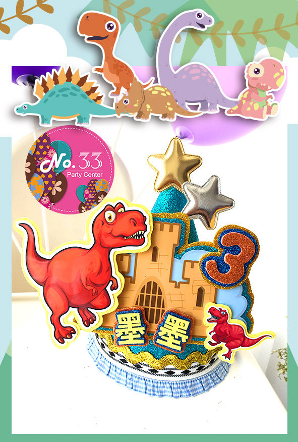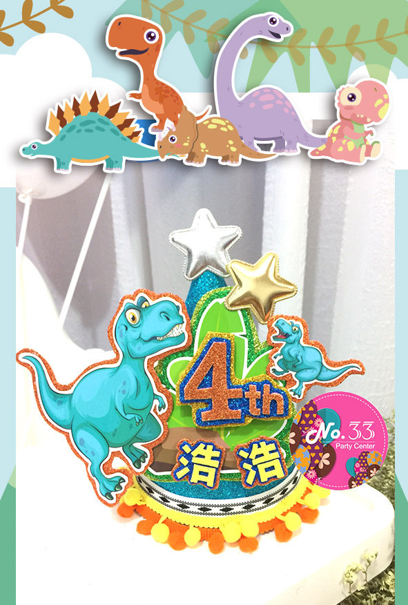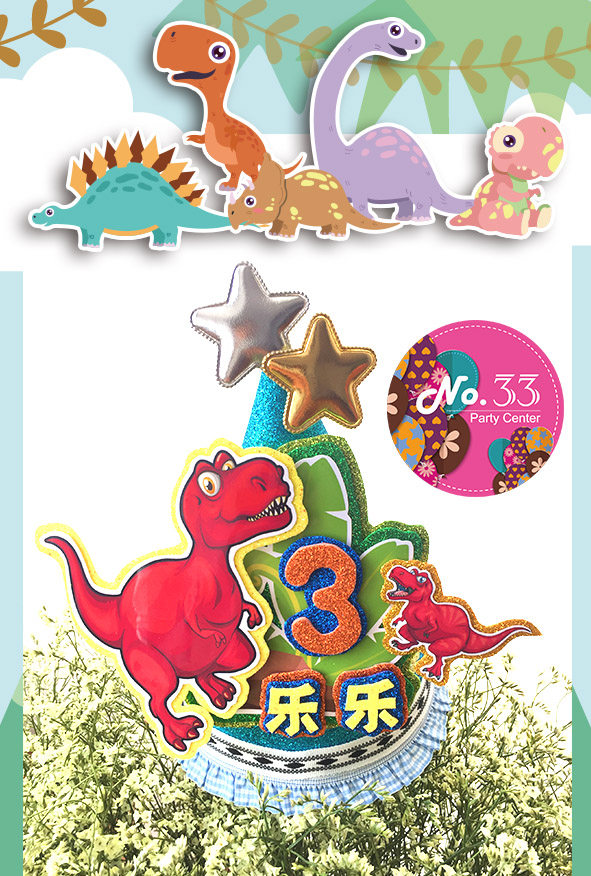 Hot Selling Dinosaur Theme Birthday Hat T-Rex Zodiac Party Supplies can be customized for baby's exclusive name age