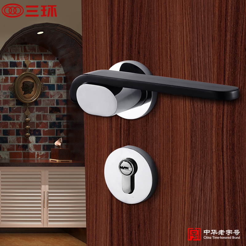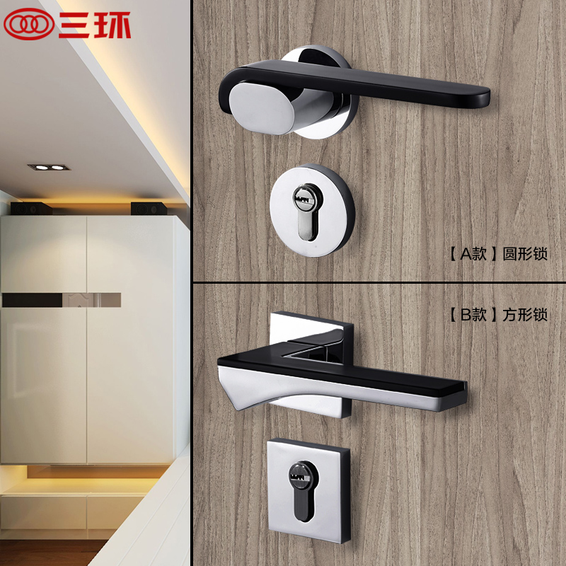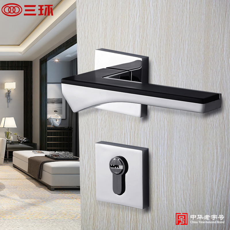 Three-ring finely-cast silent two-piece door lock bedroom indoor house wood door bright chrome handle Eurostyle solid wood door magnetic attraction lock