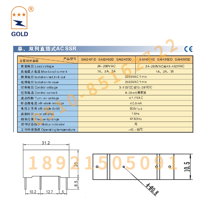 Gute GOLD small PCB solid state relay SAI4002D DC control AC 2A 7 quantity start shooting