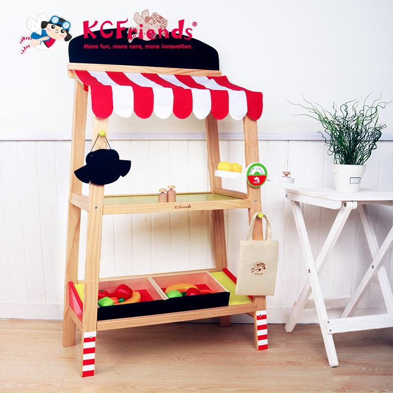 KCFriends Wooden Fruit and Vegetable Stand Boys and Girls Playing House 3-year-old Educational Toys Wooden Canteen