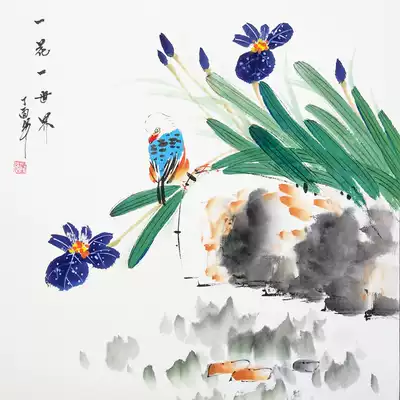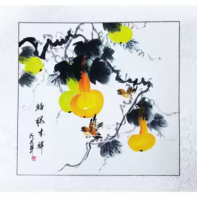Chinese painting Persimmon pure hand-painted authentic calligraphy and painting ink flower and bird painting calligraphy and painting works dining room painting has been framed