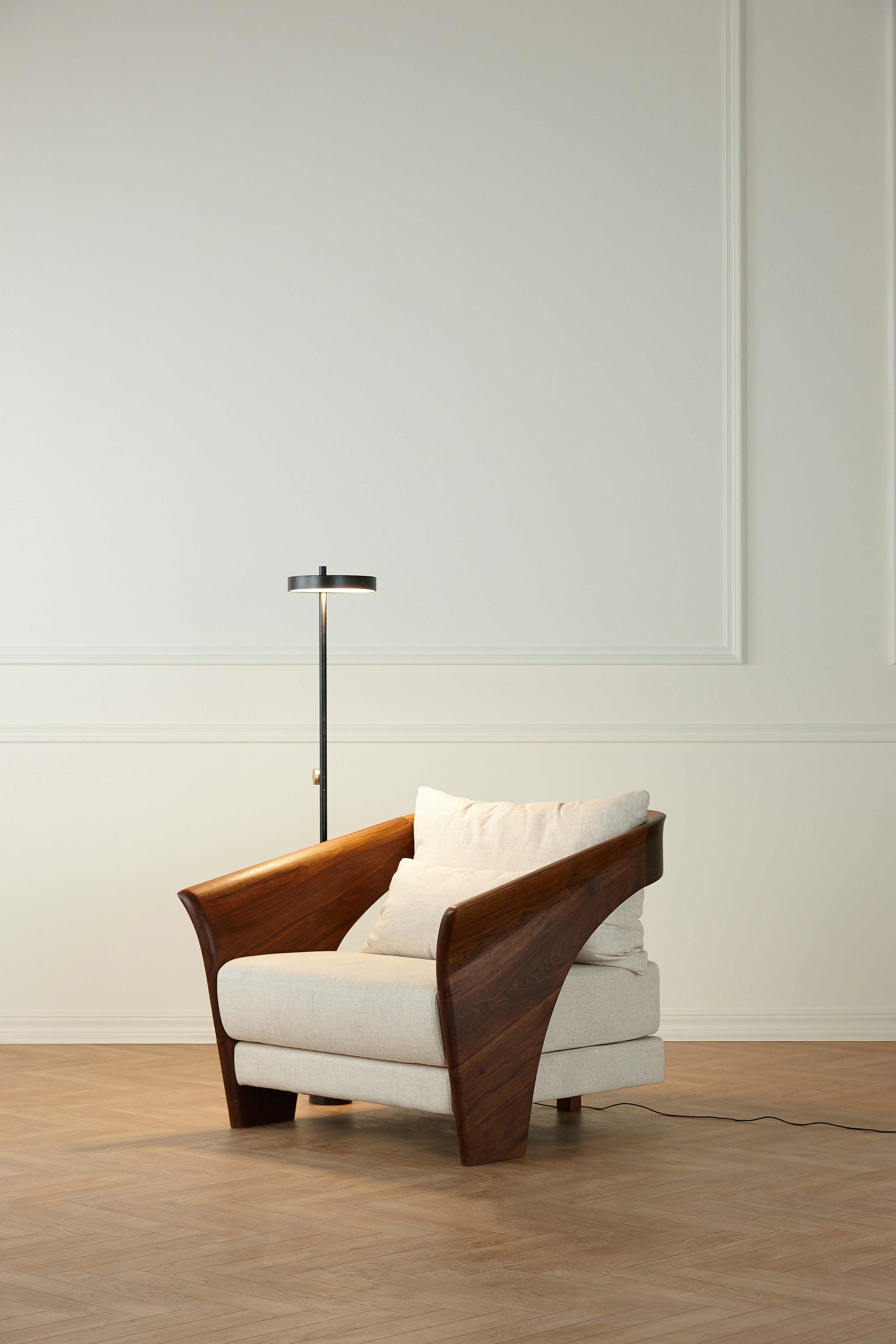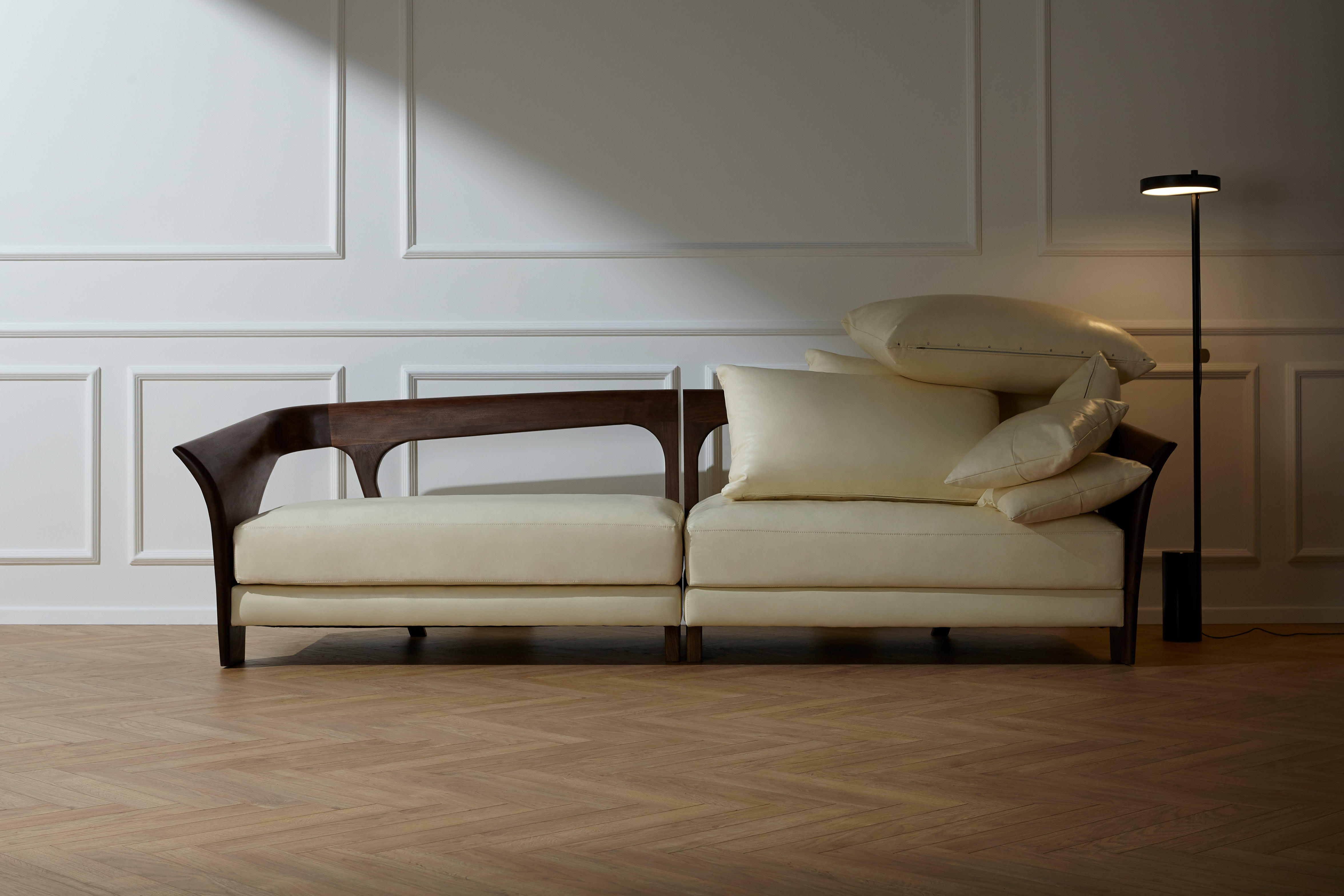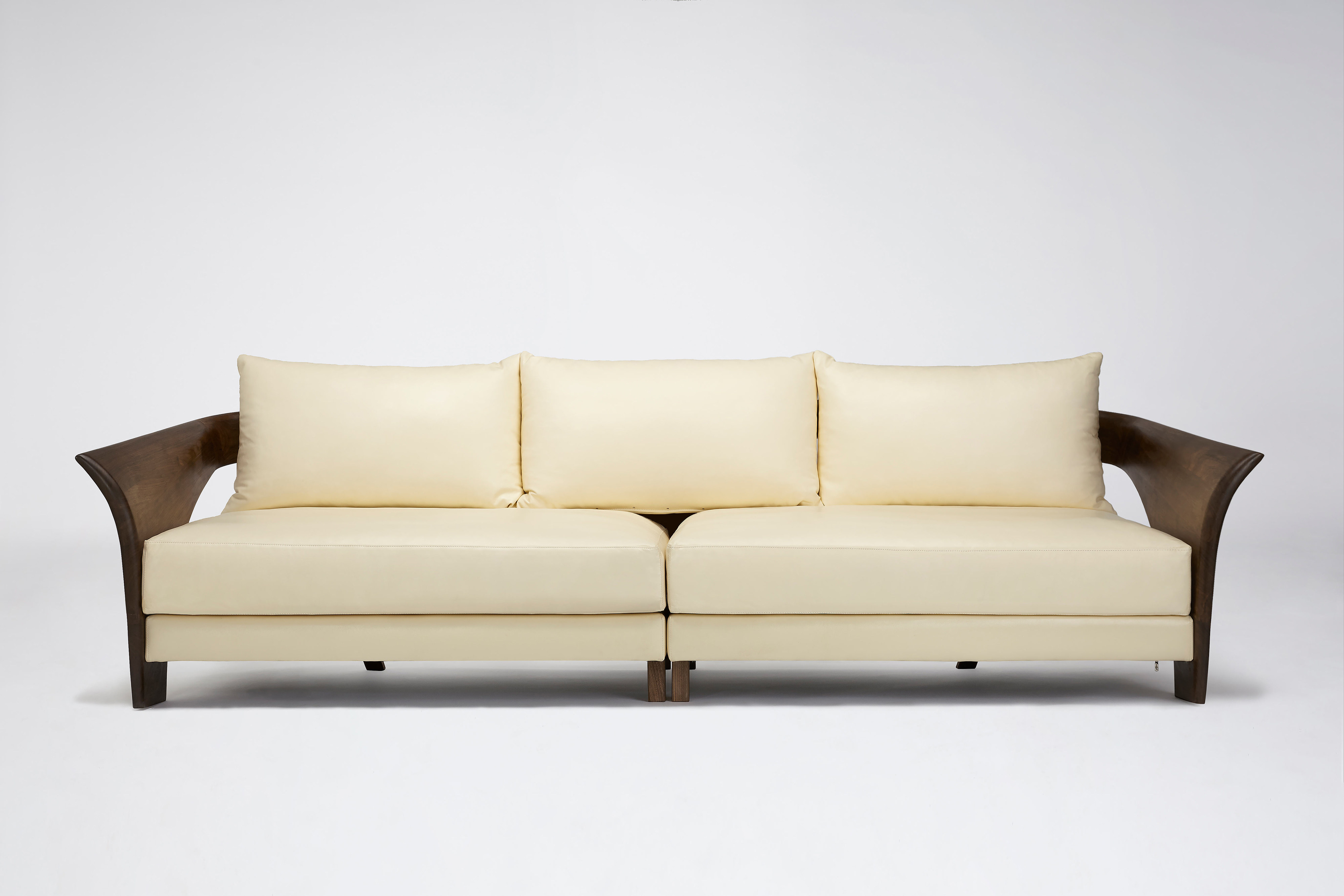 Yike Solid Wood Furniture Albatross Sofa Simple Original Design Black Walnut Top Cowhide Living Room Wood Wax Oil