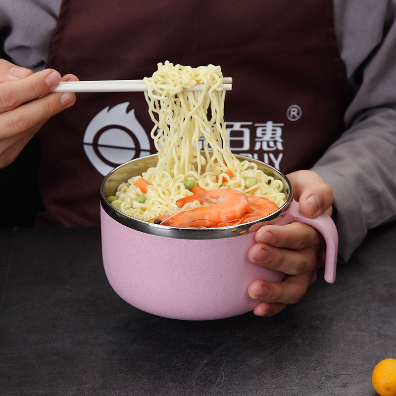 Brief about 304 stainless steel foam noodles bowl Blister Noodle Bowl with lid Student bowl Single day Dormitory With Bowl chopstick suit