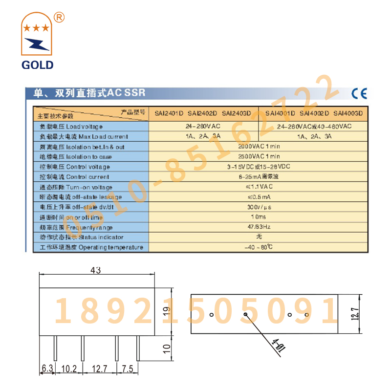 Gooter GOLD Small PCB Solid State Relay SAI4003D DC Control AC 3A 7 Number of Up Shots-Taobao