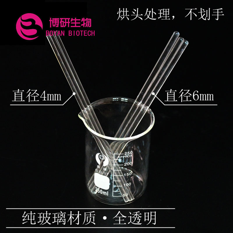 Round head glass rod solid transparent stirring rod diversion and drainage rod drying mouth drying head length 20 30cm diameter 4 6mm
